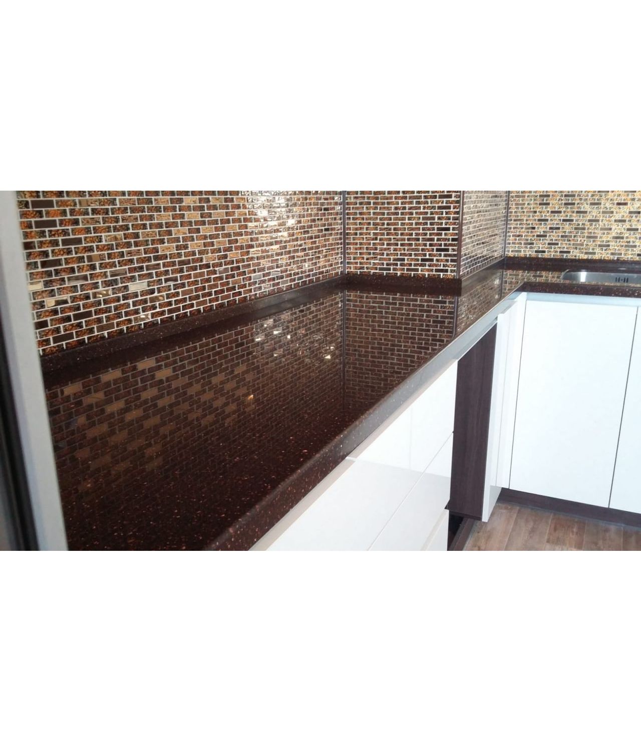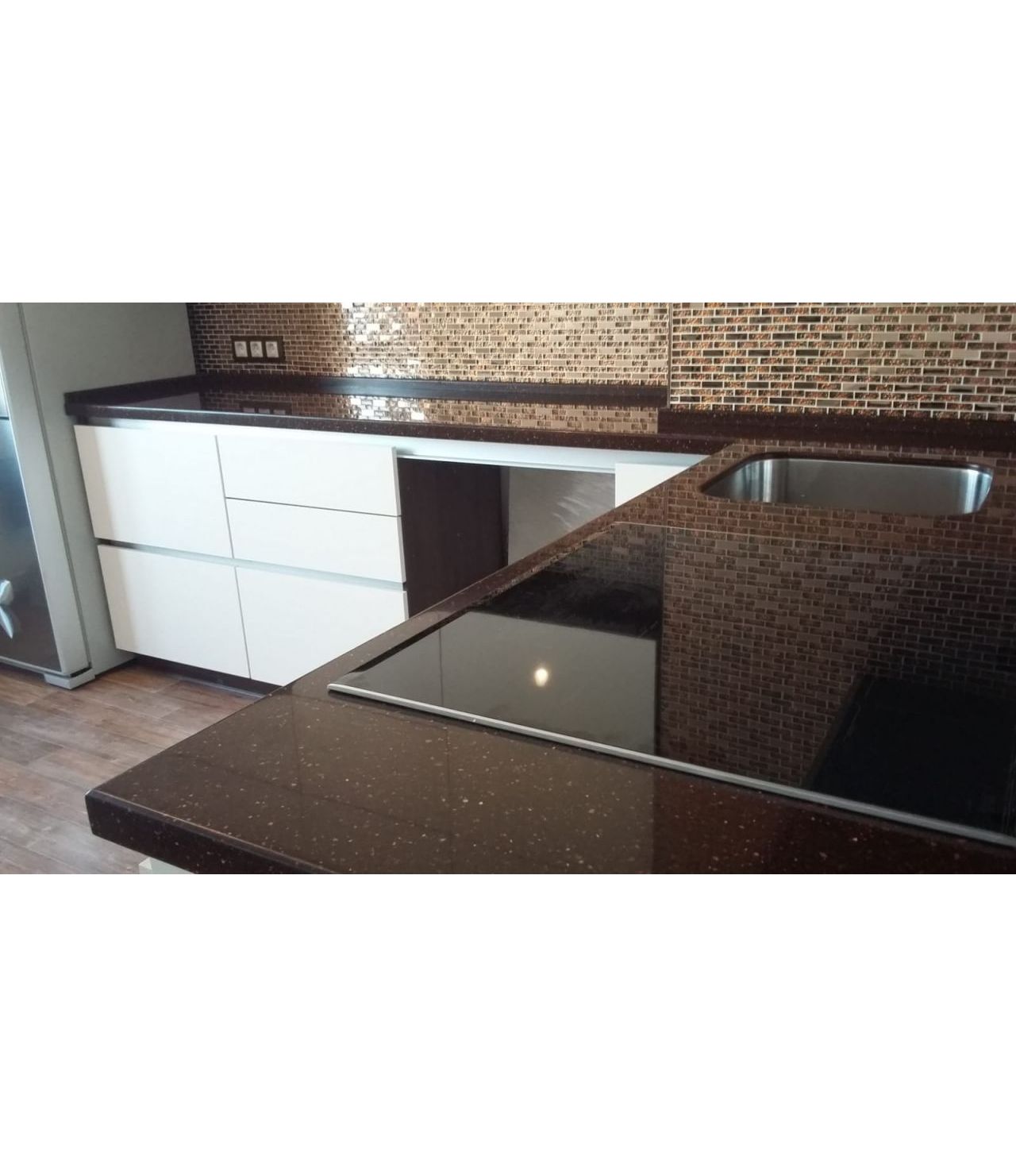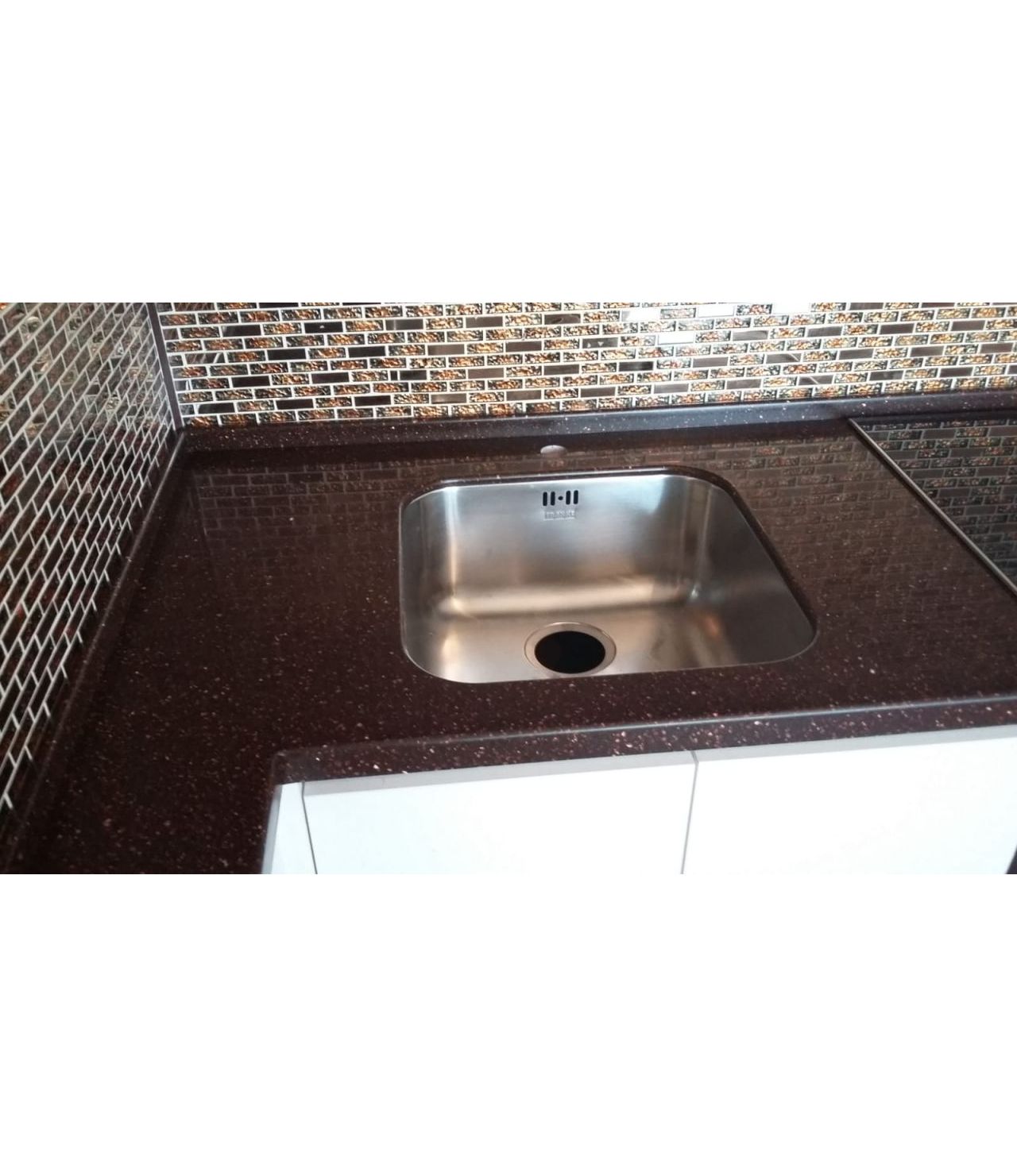 Cтолешница из камня GRANDEX, два выреза ( мойка и варочная поверхность ), мойка подстольного монтажа, пристеночный бортик под 900