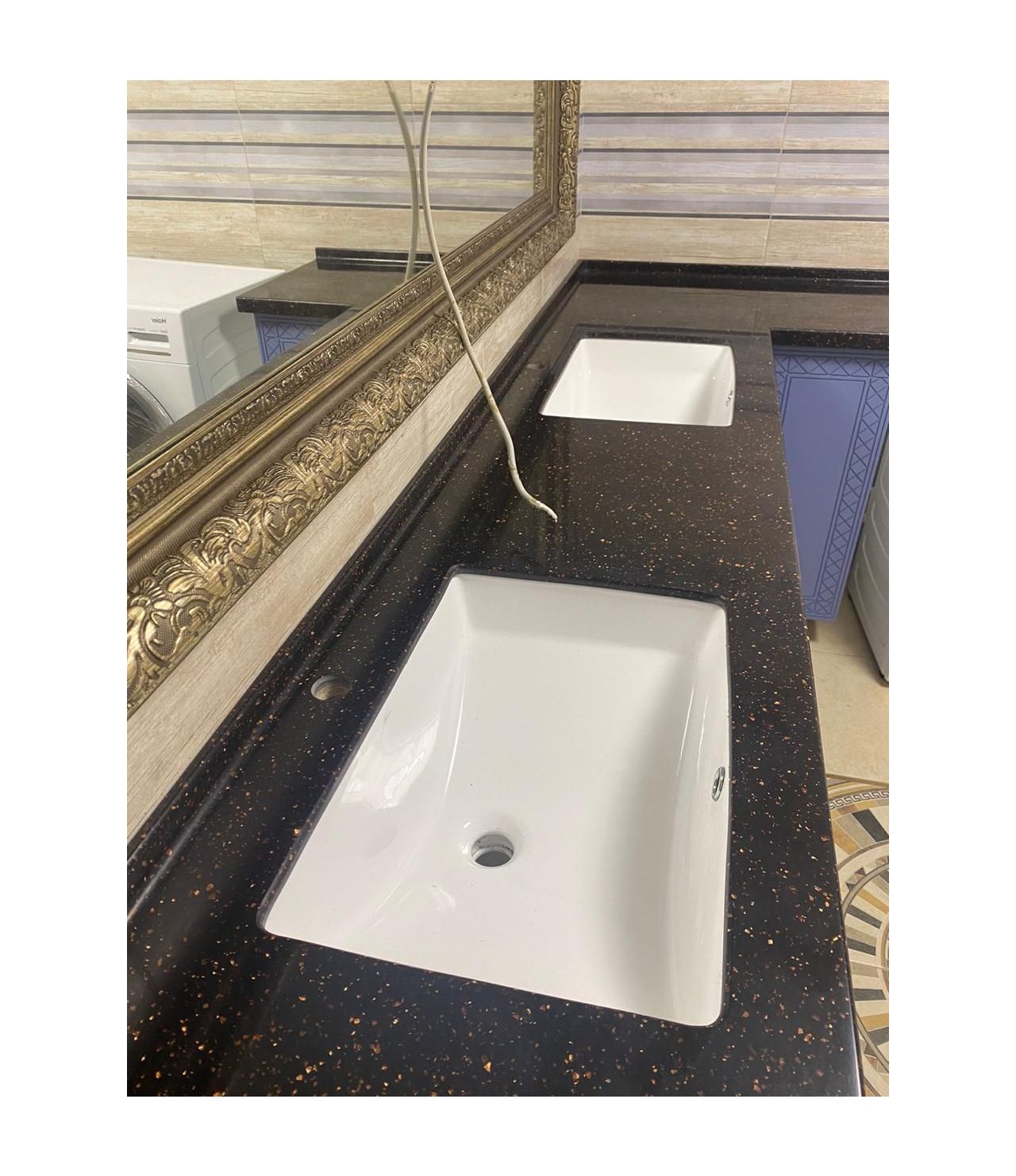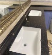 Столешница с интегрированным бортиком ( "литым" ), раковины подстольного монтажа.