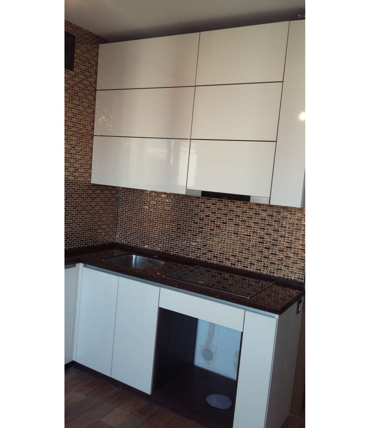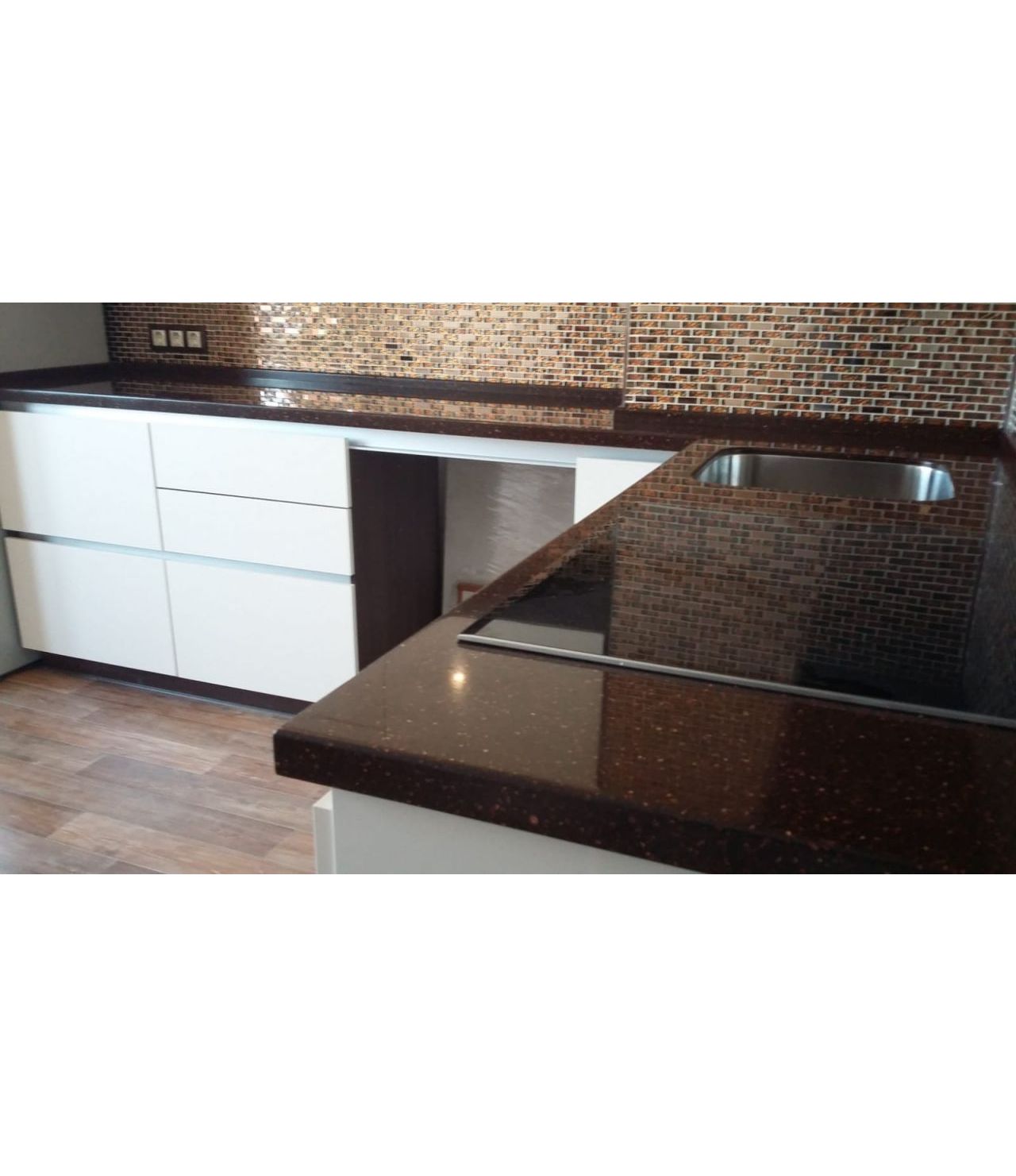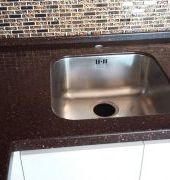 Cтолешница из камня GRANDEX, два выреза ( мойка и варочная поверхность ), мойка подстольного монтажа, пристеночный бортик под 900