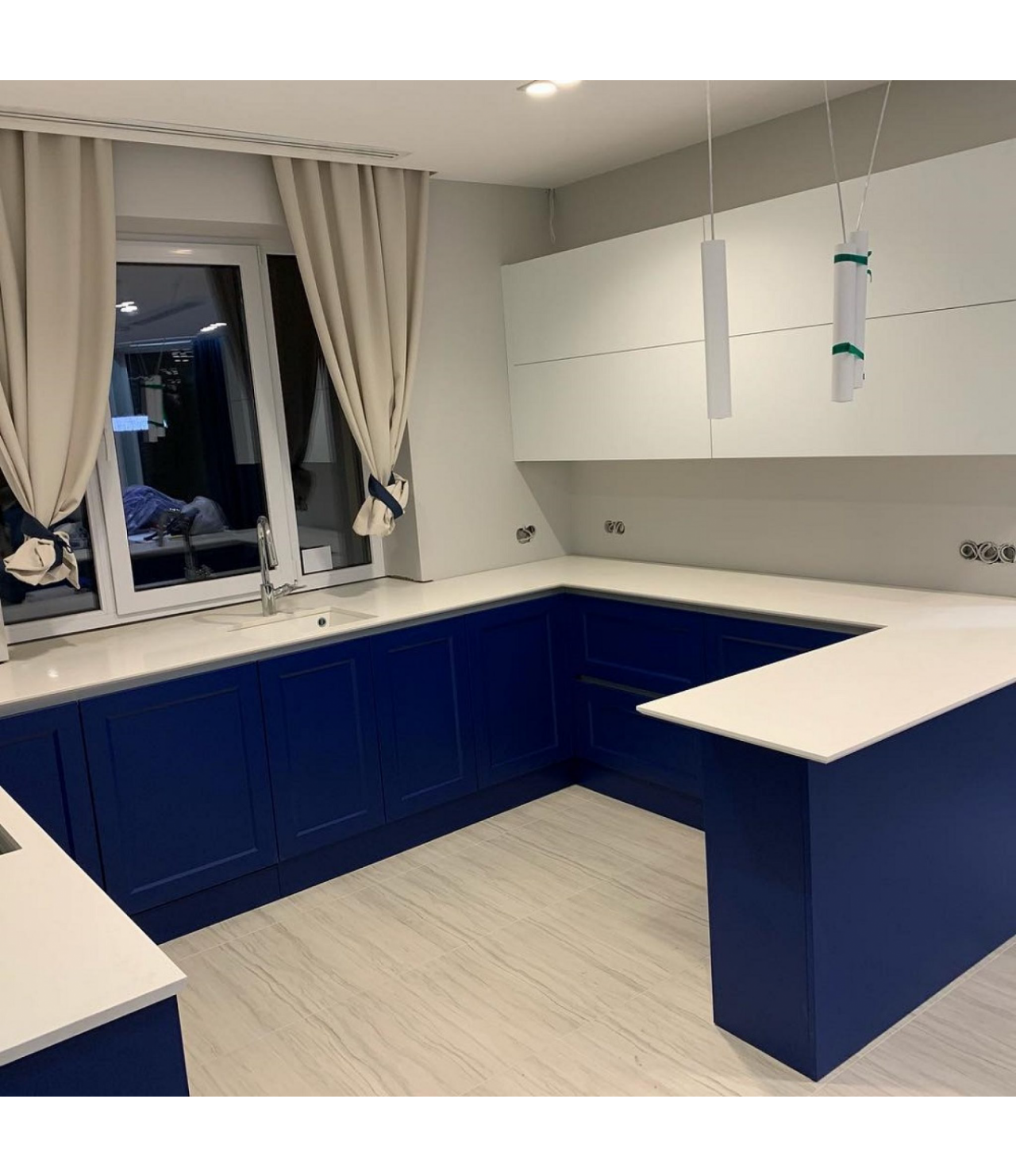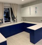 Столешница, переходящая в подоконник, выполнена из искусственного камня GRANDEX , два выреза ( под мойку и варочную поверхность), мойка подстольного монтажа.