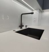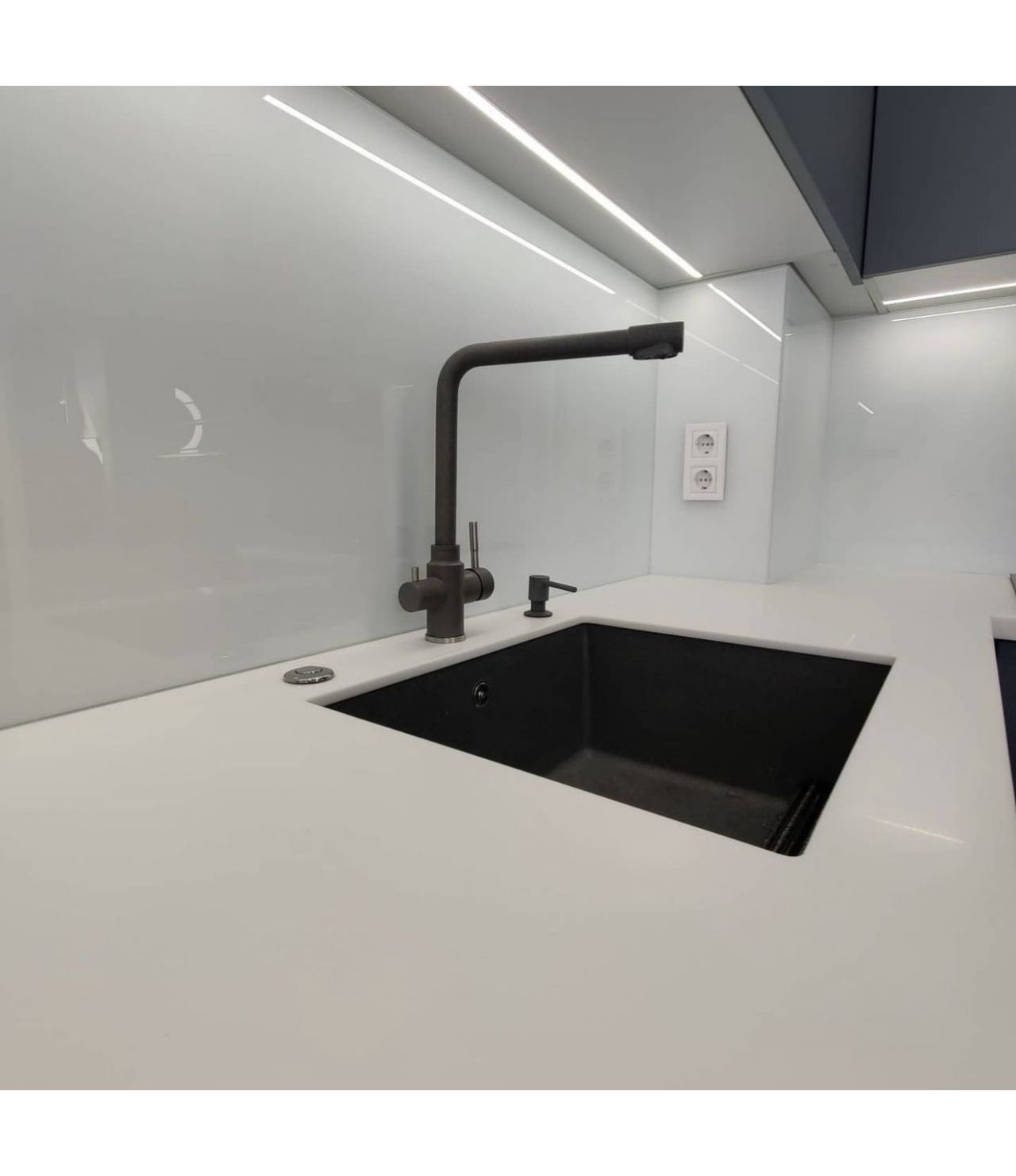 Столешница выполнена из искусственного камня GRANDEX , два выреза ( под мойку и варочную поверхность), мойка подстольного монтажа.
