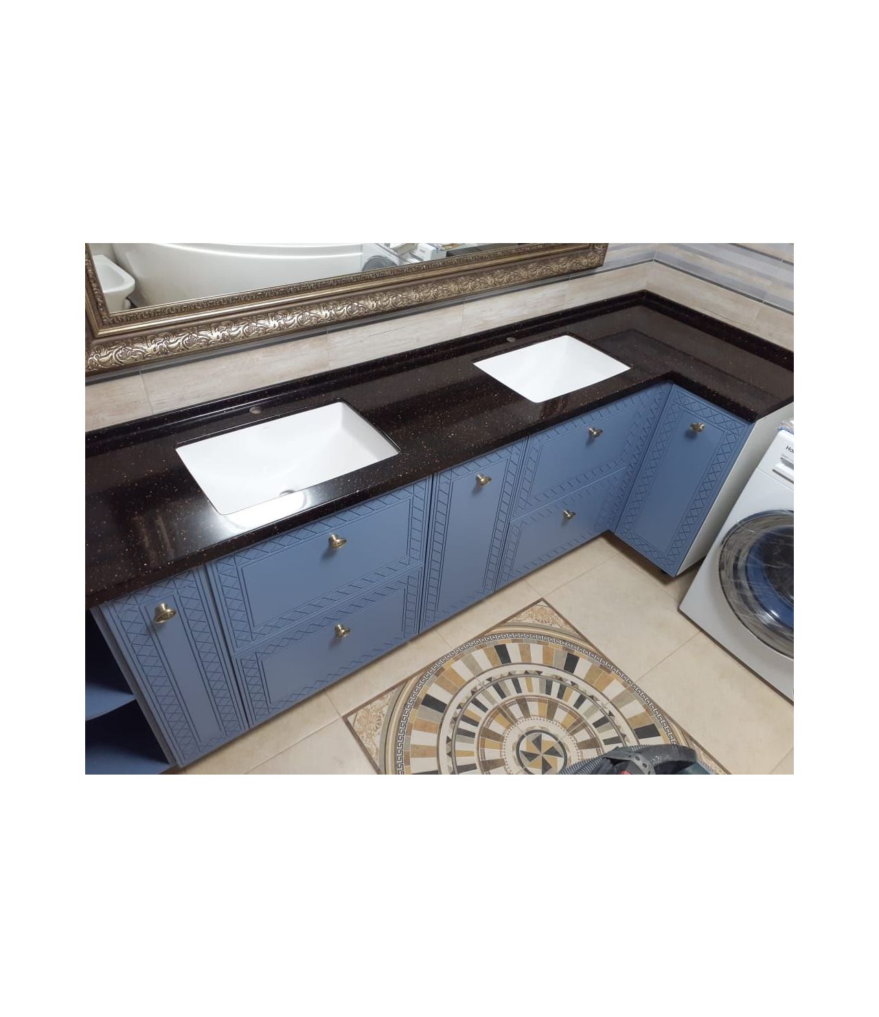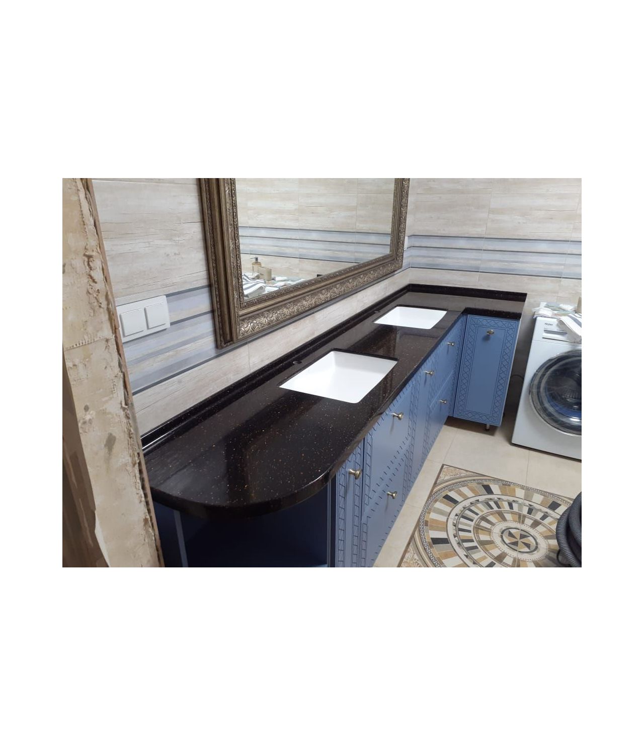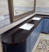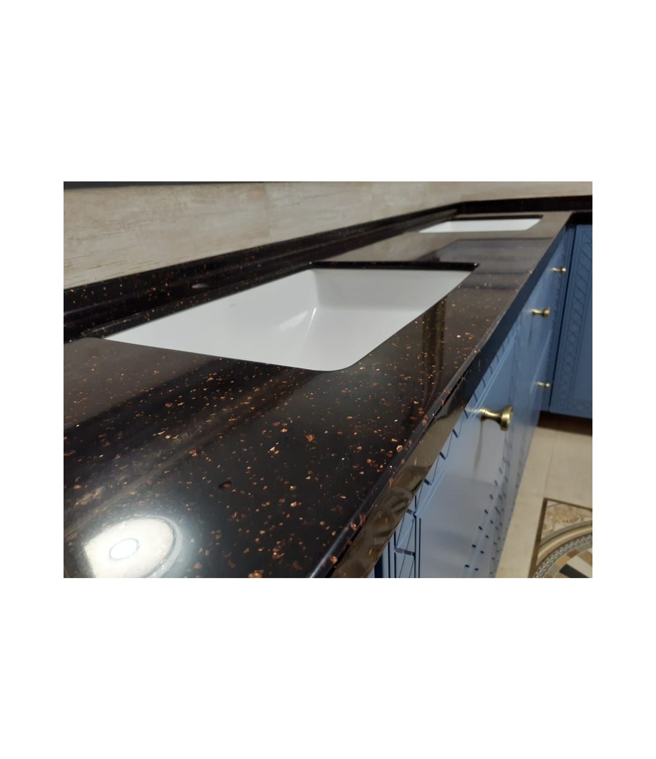 Столешница с интегрированным бортиком ( "литым" ), раковины подстольного монтажа.